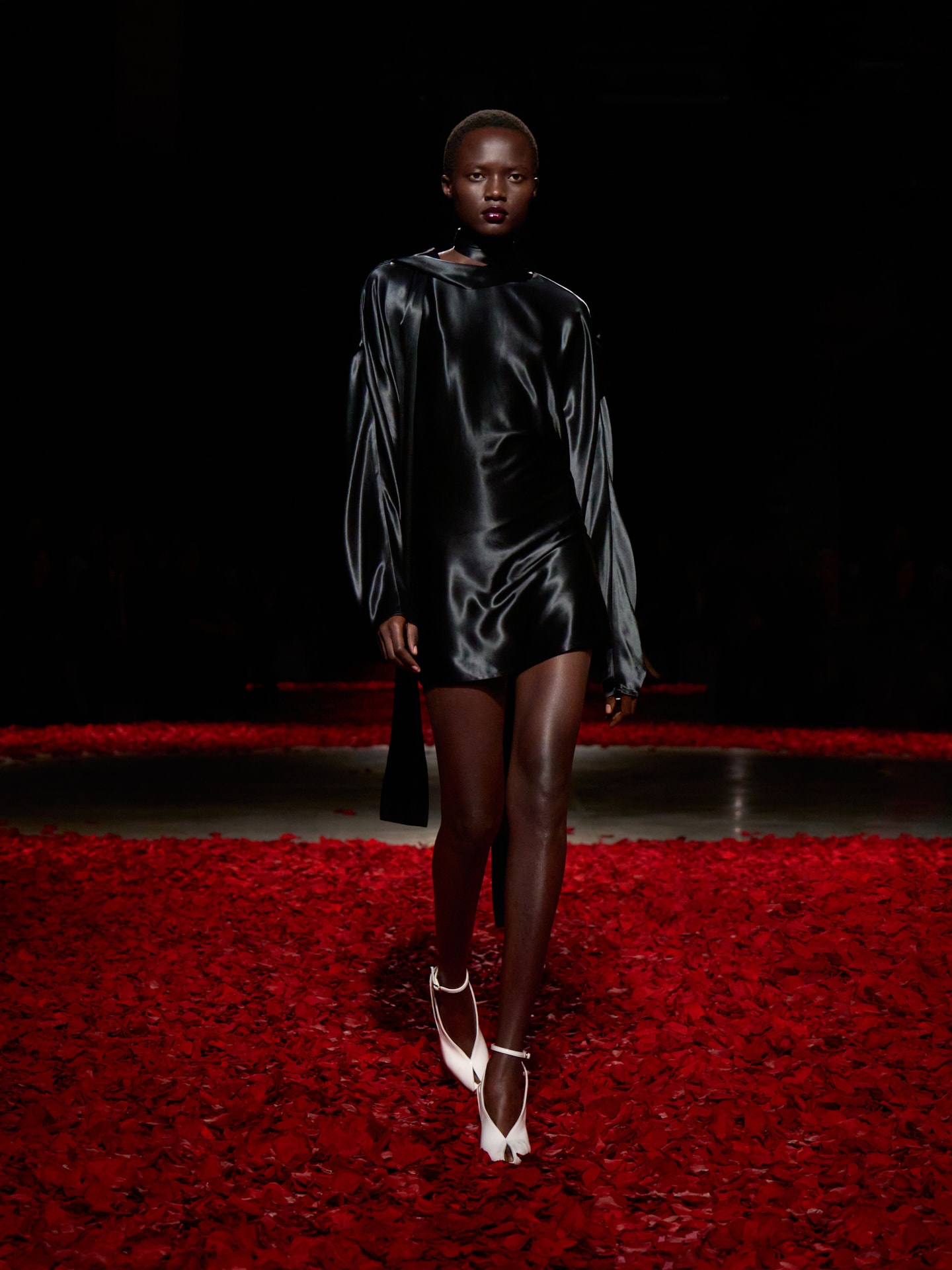 For the FW25 collection, Maximilian Davis explores the language of the body and the uninhibited expression of German Tanztheater, weaving inspirations from the 1920s and 1980s with his distinctive vision. The result is a collection that reinterprets movement through fluid silhouettes, tailored details, and surrealist accents.