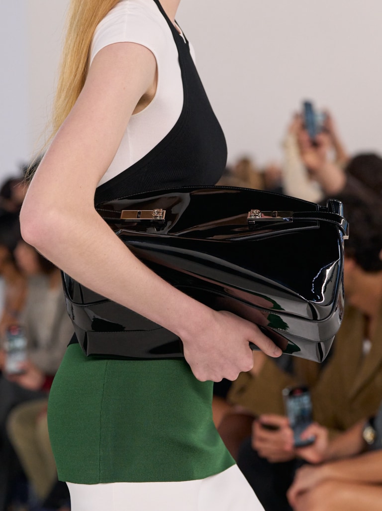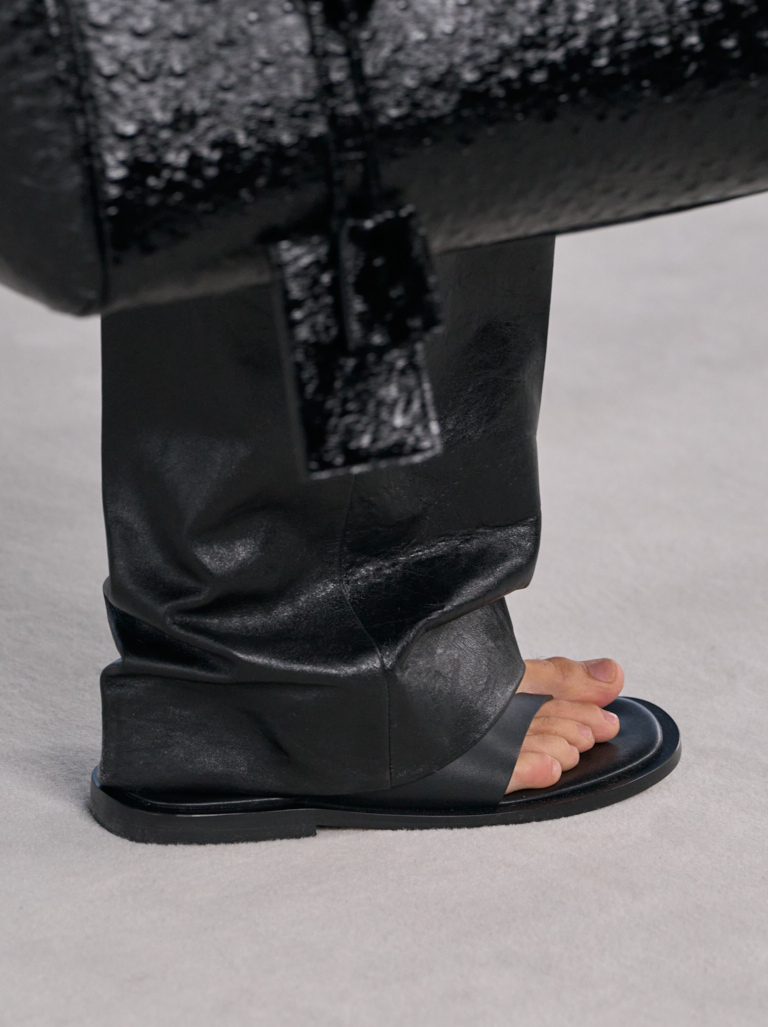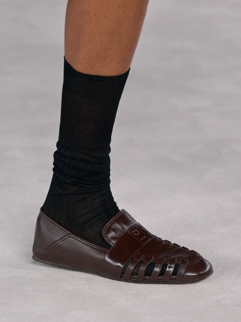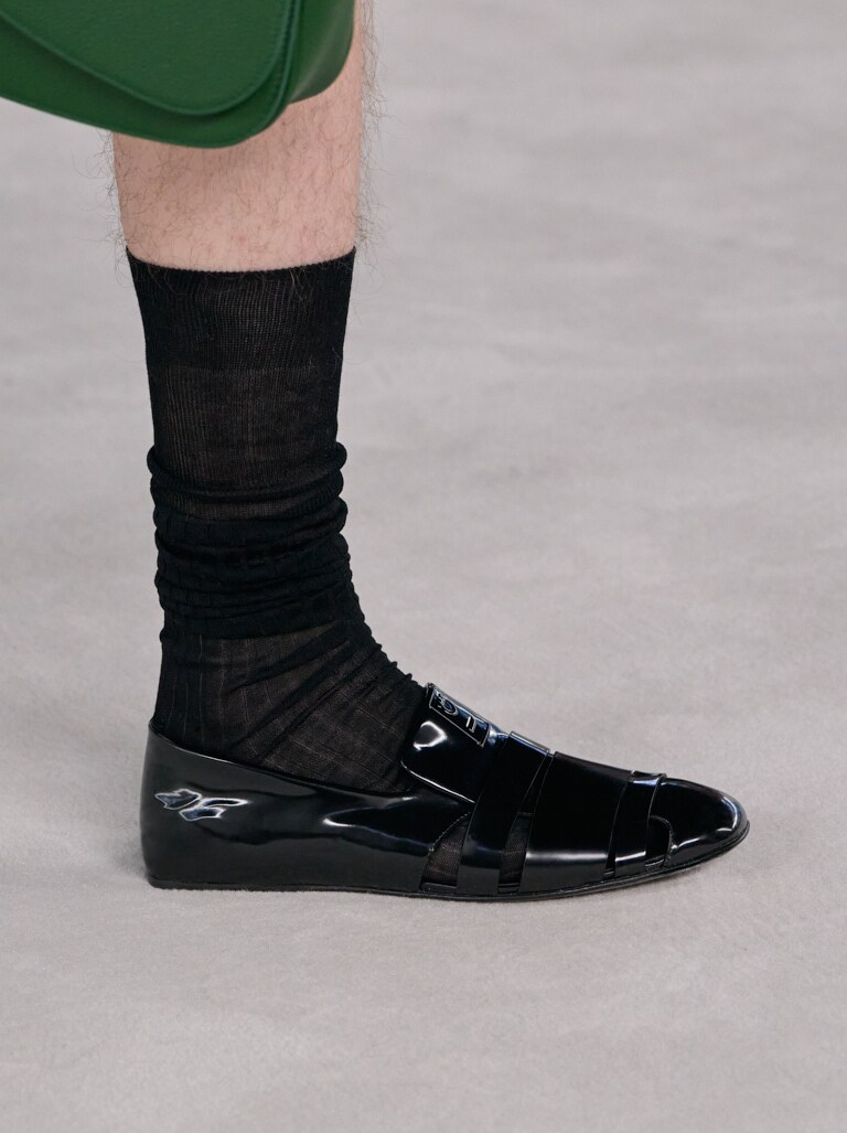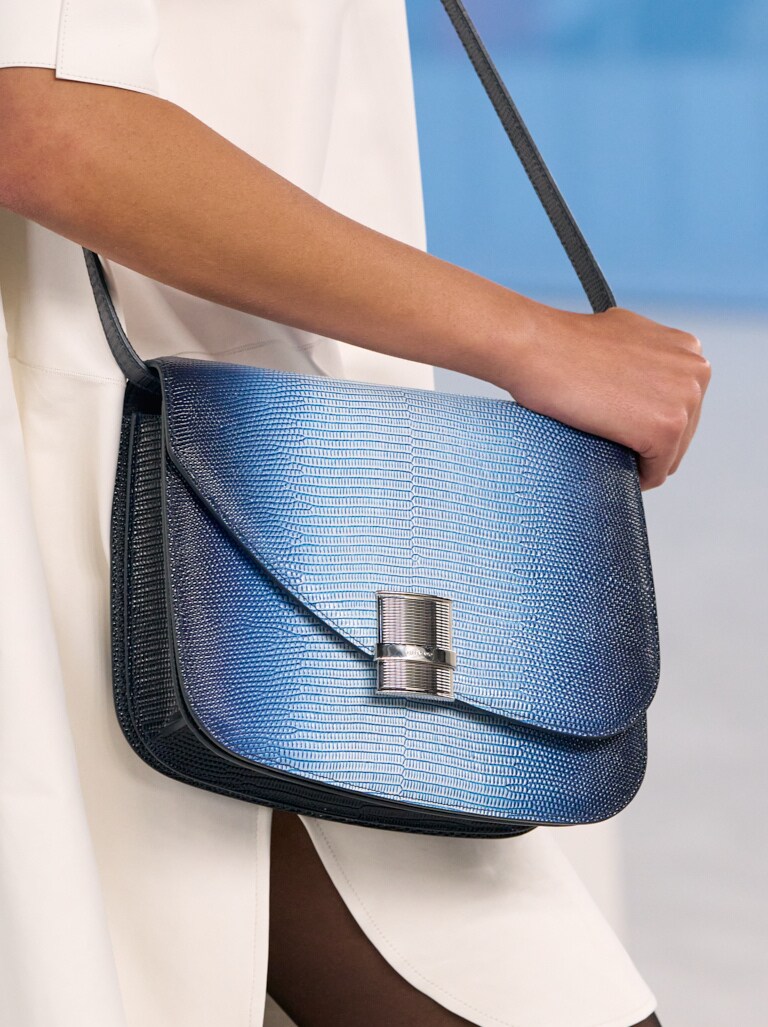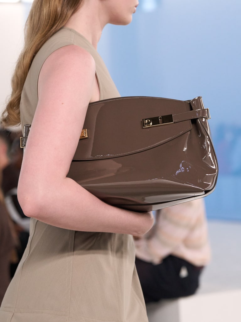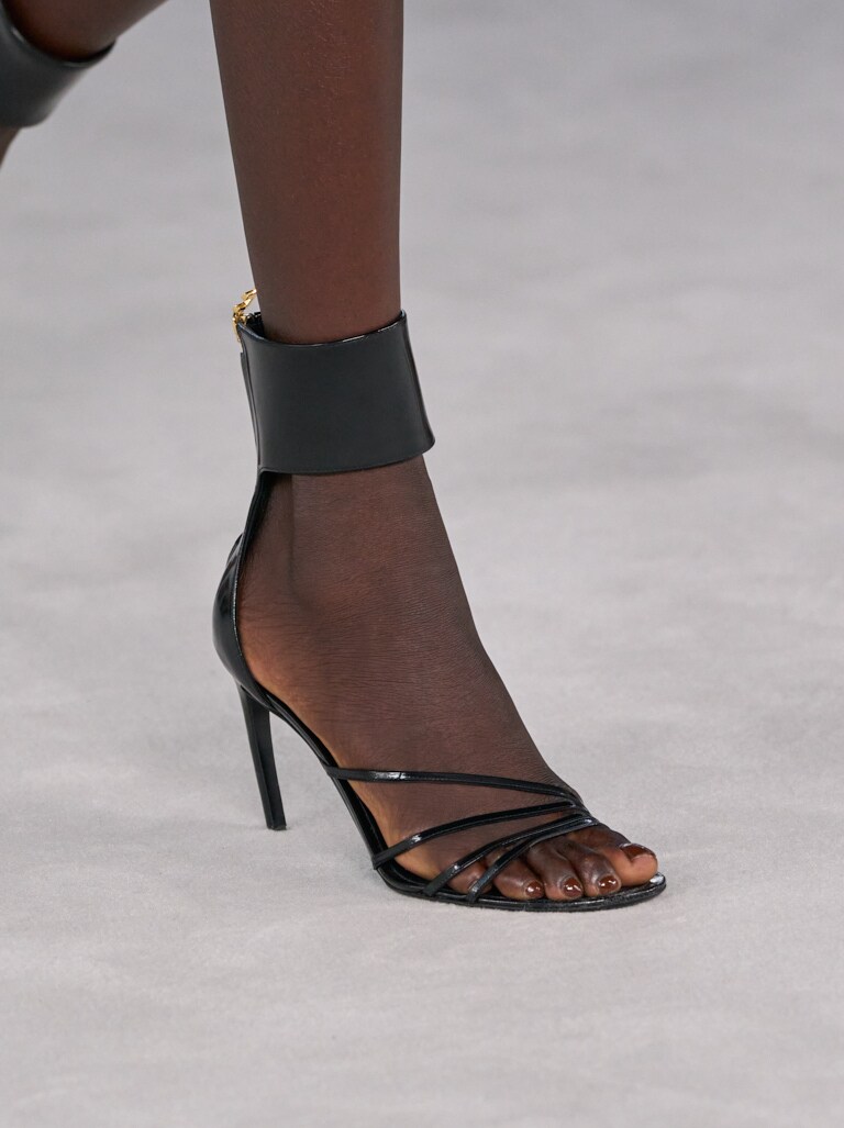 Beschläge und Schmuck weisen organische Formen aus Holz und Metall auf. Eine Sandale mit dem ikonischen Calypso-Absatz, inspiriert vom Archiv, wird mit einer 3D-Drucktechnik neu gestaltet. Andere Schuhe mit Absätzen werden aus Holz, Mais und Horn geschmiedet, während die Taschen Hug und Fiamma neue Materialien und visuelle Codes verwenden. Es ist eine Saison der gehobenen Handwerkskunst und des anspruchsvollen Designs, ein zeitloser Ausdruck von Kunstfertigkeit und Verführung.