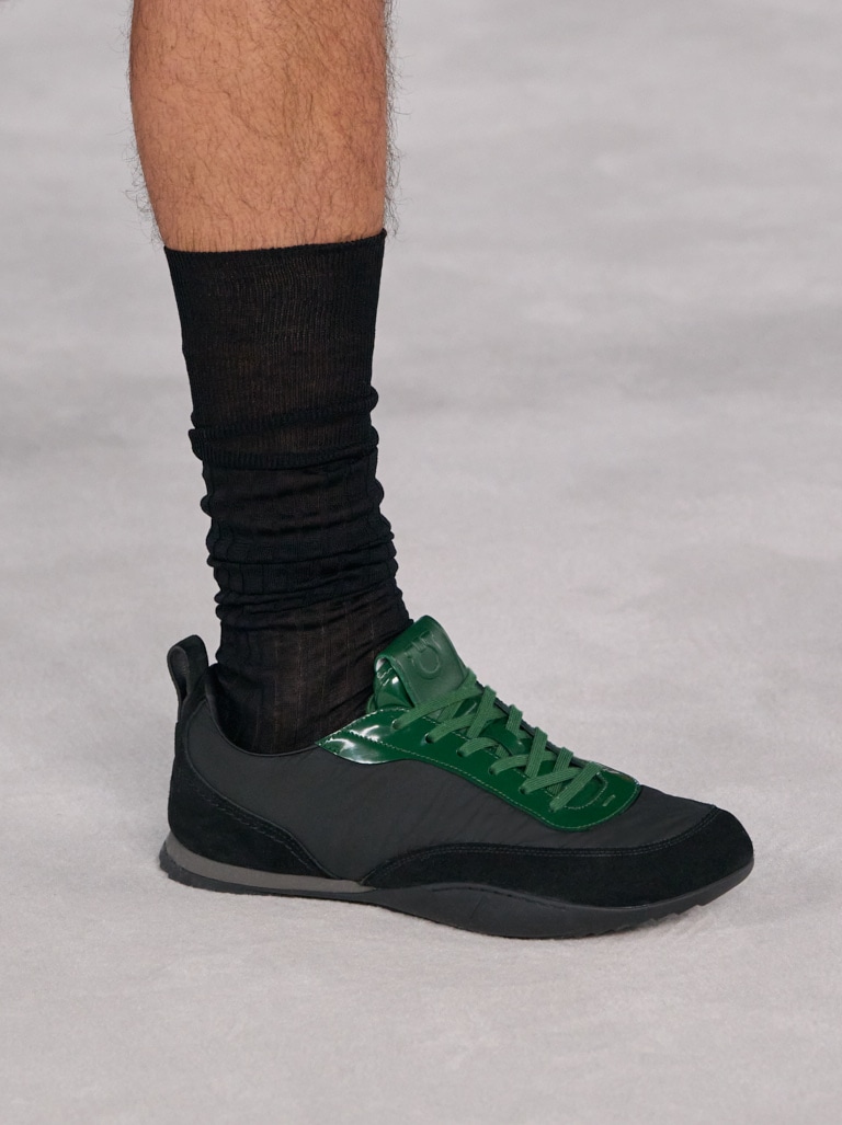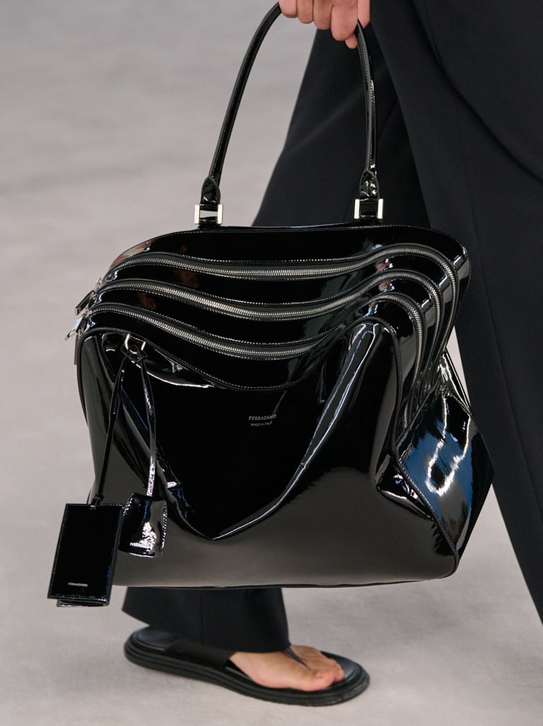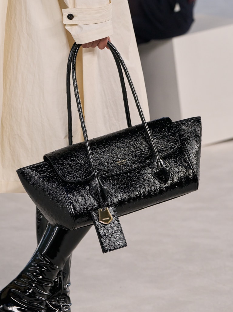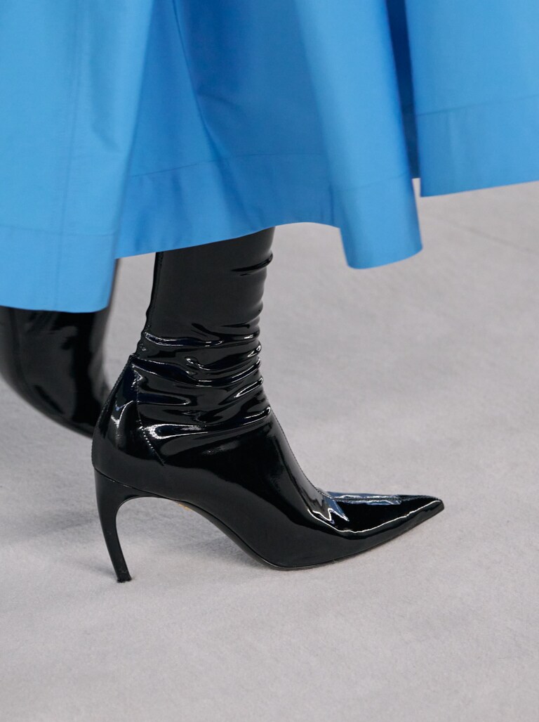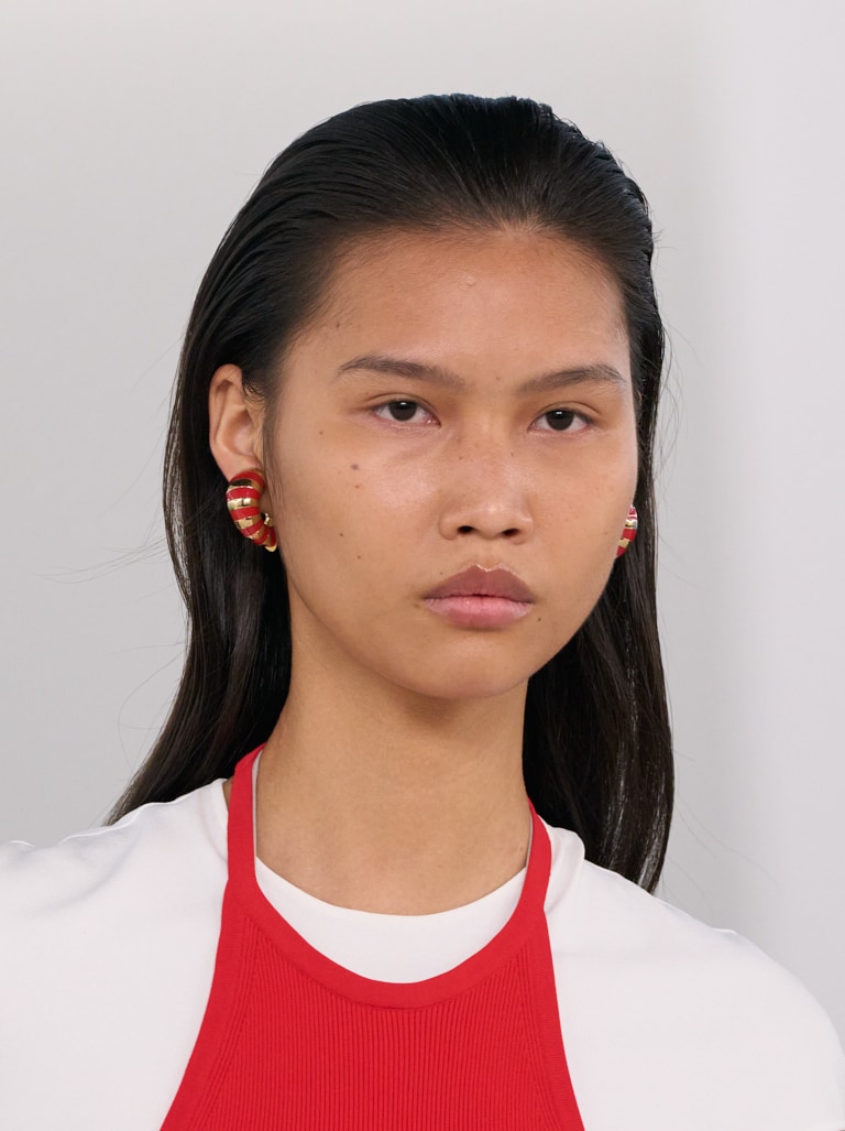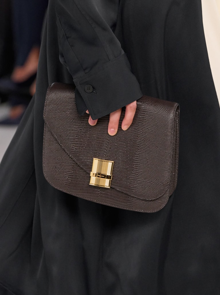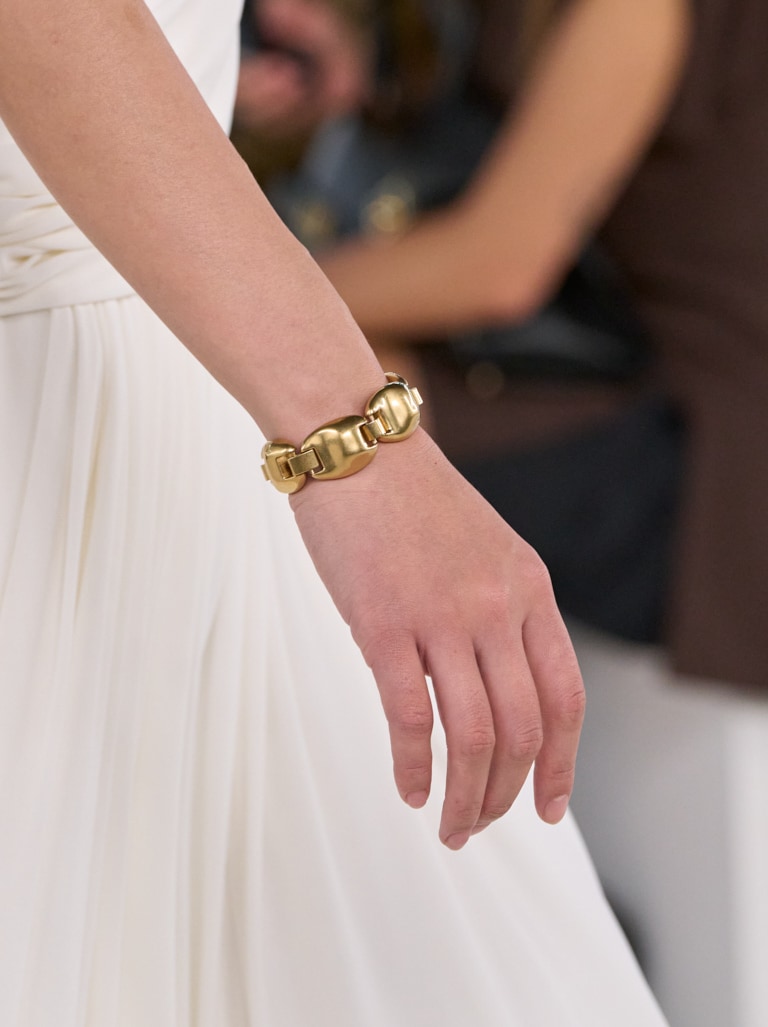 Beschläge und Schmuck weisen organische Formen aus Holz und Metall auf. Eine Sandale mit dem ikonischen Calypso-Absatz, inspiriert vom Archiv, wird mit einer 3D-Drucktechnik neu gestaltet. Andere Schuhe mit Absätzen werden aus Holz, Mais und Horn geschmiedet, während die Taschen Hug und Fiamma neue Materialien und visuelle Codes verwenden. Es ist eine Saison der gehobenen Handwerkskunst und des anspruchsvollen Designs, ein zeitloser Ausdruck von Kunstfertigkeit und Verführung.