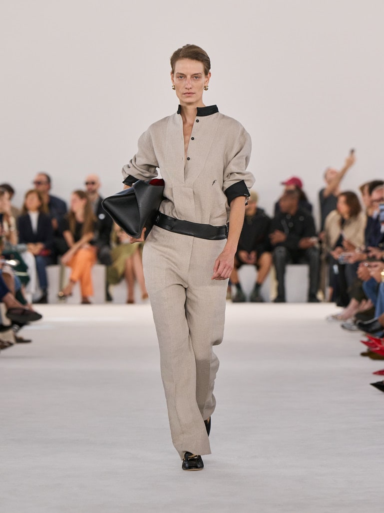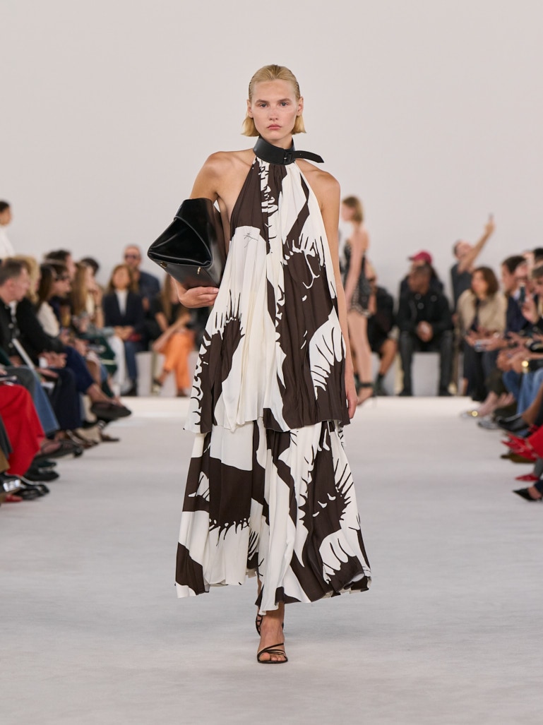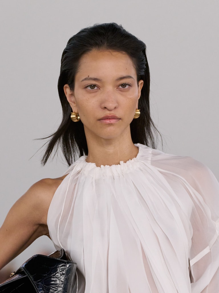 Leichte Texturen, maßgeschneiderte Konstruktionen und skulpturale Akzente bilden eine alltägliche Garderobe, die von der Spannung der Gegensätze geprägt ist und ein Gleichgewicht zwischen Leichtigkeit und Raffinesse, Fluidität und Substanz, Eleganz und Kühnheit schafft. Das Vermächtnis des Hauses und das Erbe von Florenz werden durch eine moderne Mischung aus Kultur und Handwerkskunst in einem subtilen Kontrast aus Luxus und Natürlichkeit erkundet.