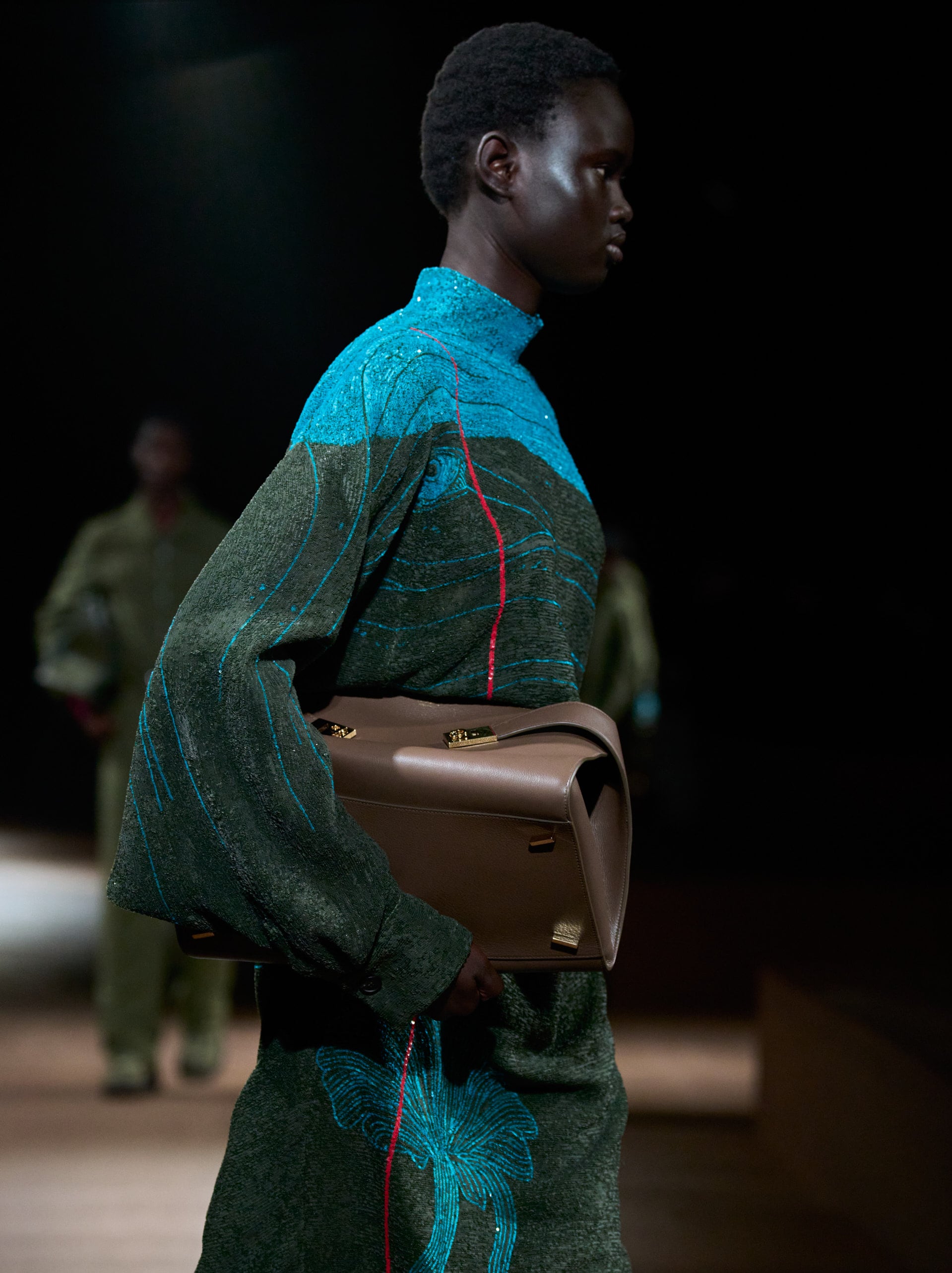 “Dans les années 1920, le vêtement était un moyen de célébrer la liberté. Et cette expression de la liberté est quelque chose qui résonne avec moi, avec mon héritage et avec Ferragamo.” – Maximilian Davis