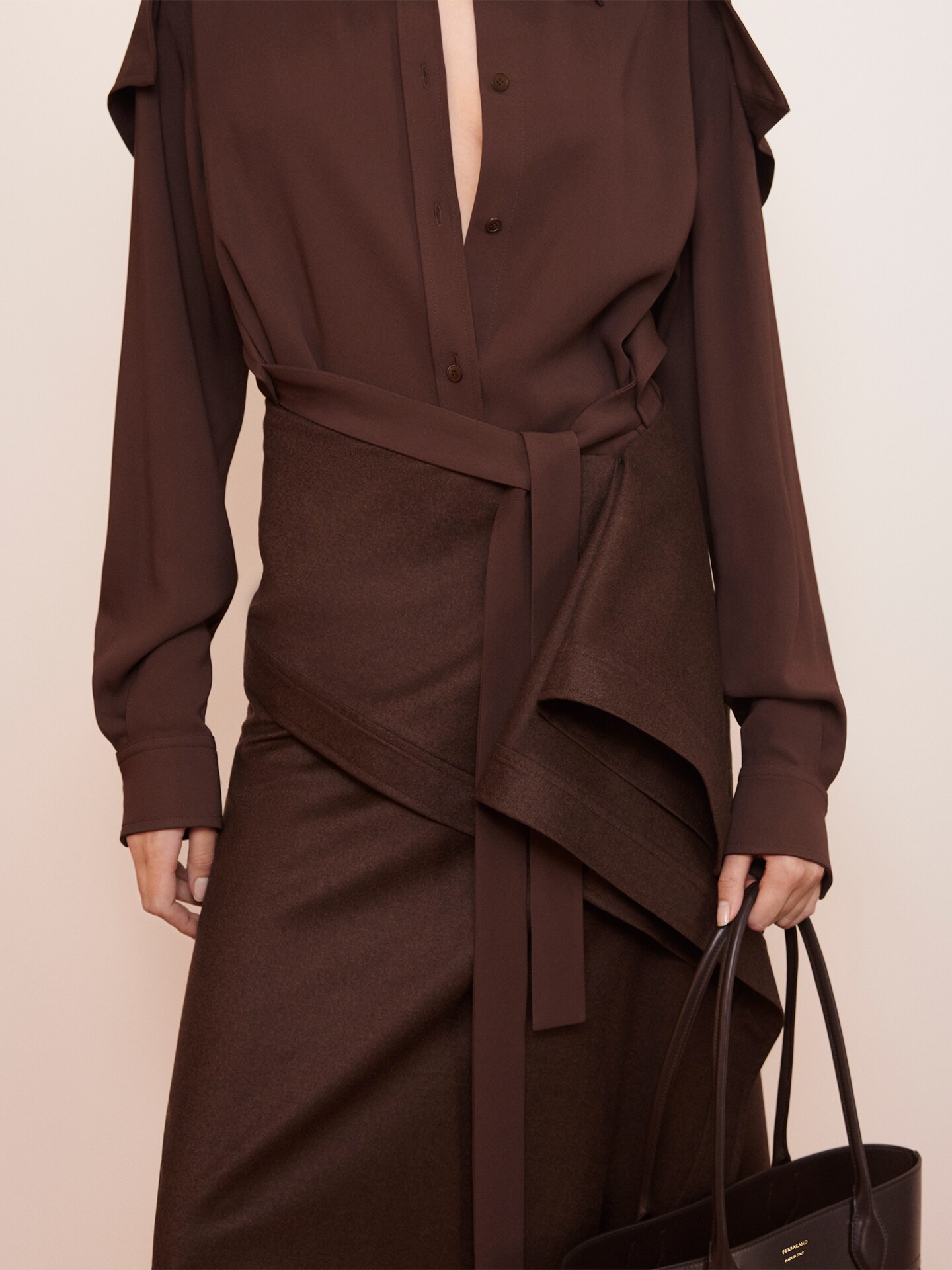 Pour la collection Pre-Fall 2025, Maximilian Davis s'inspire des Caraïbes et de l'Afrique de l'Ouest, réinterprétant ces mondes à travers le prisme d'un minimalisme élégant et de l'artisanat italien qui définit aujourd'hui Ferragamo. La palette chromatique évoque les cartes postales de paysages caraïbes et les brochures touristiques des années 80, se mêlant à la force expressive du portrait malien des années 70.