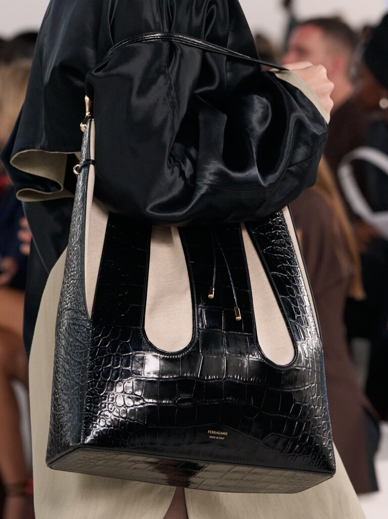 La bijouterie et la joaillerie présentent des formes organiques en bois et en métal. Une sandale au talon emblématique Calypso, inspirée des archives, est repensée grâce à une technique d'impression en 3D. D'autres chaussures à talon sont forgées avec du bois, du maïs et de la corne, tandis que les sacs Hug et Fiamma adoptent de nouvelles fabrications et de nouveaux codes visuels. C'est une saison d'artisanat de haut niveau et de design sophistiqué, une expression intemporelle de l'art et de l'allure.