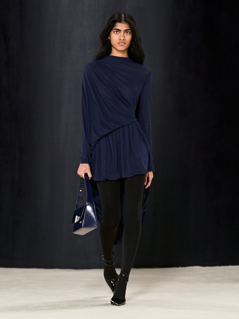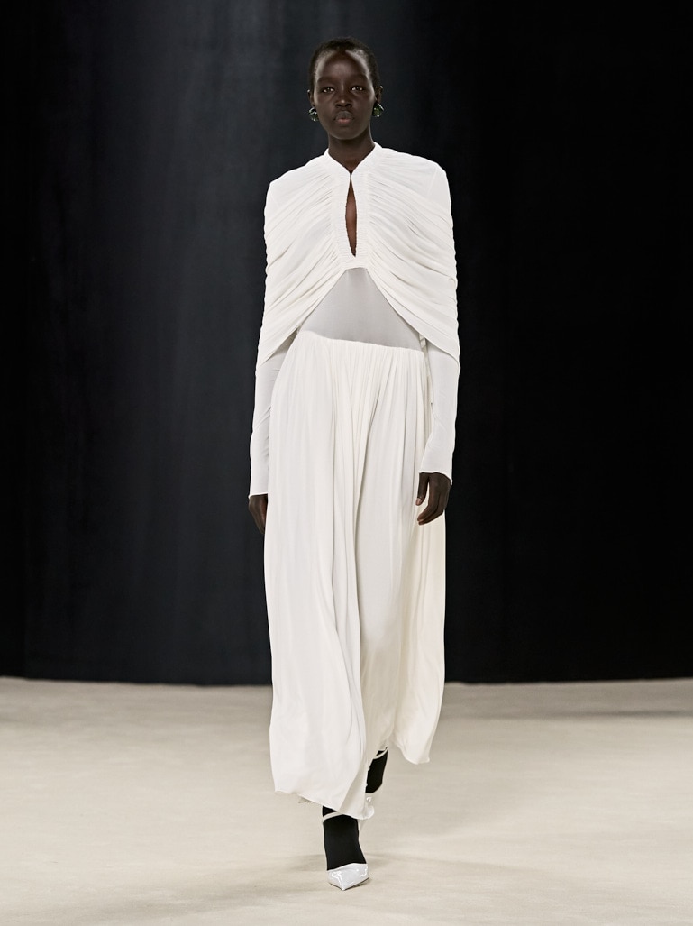Maximilian Davis regresa a Hollywood, la segunda casa de Salvatore Ferragamo, para inspirarse en el vestuario de las estrellas con las que la casa de moda trabajó en los años cincuenta. Su forma de vestir, combinada con referencias artísticas, estilo motero y drapeados renacentistas, descubre una modernidad absoluta en los nuevos códigos de Ferragamo.