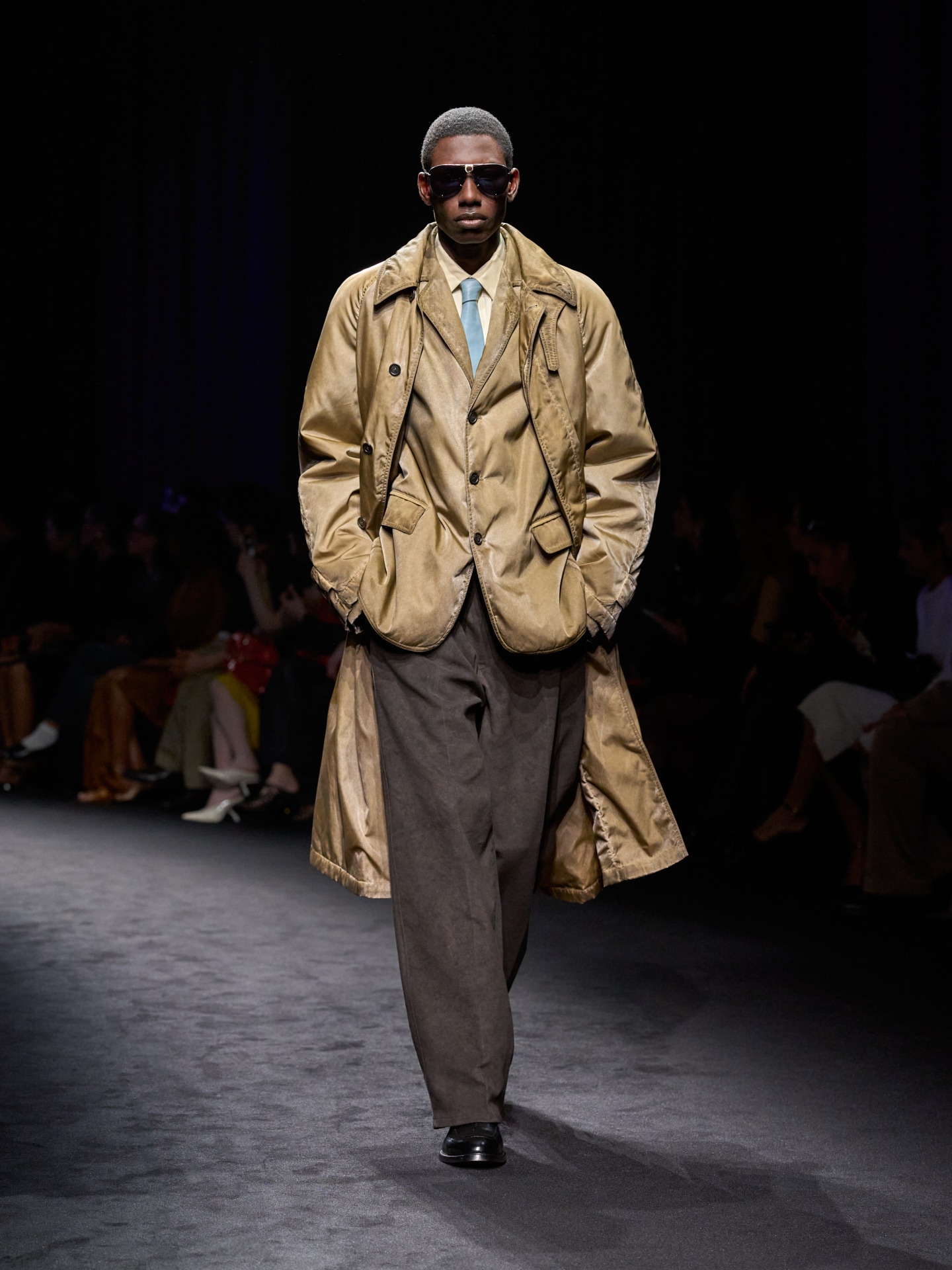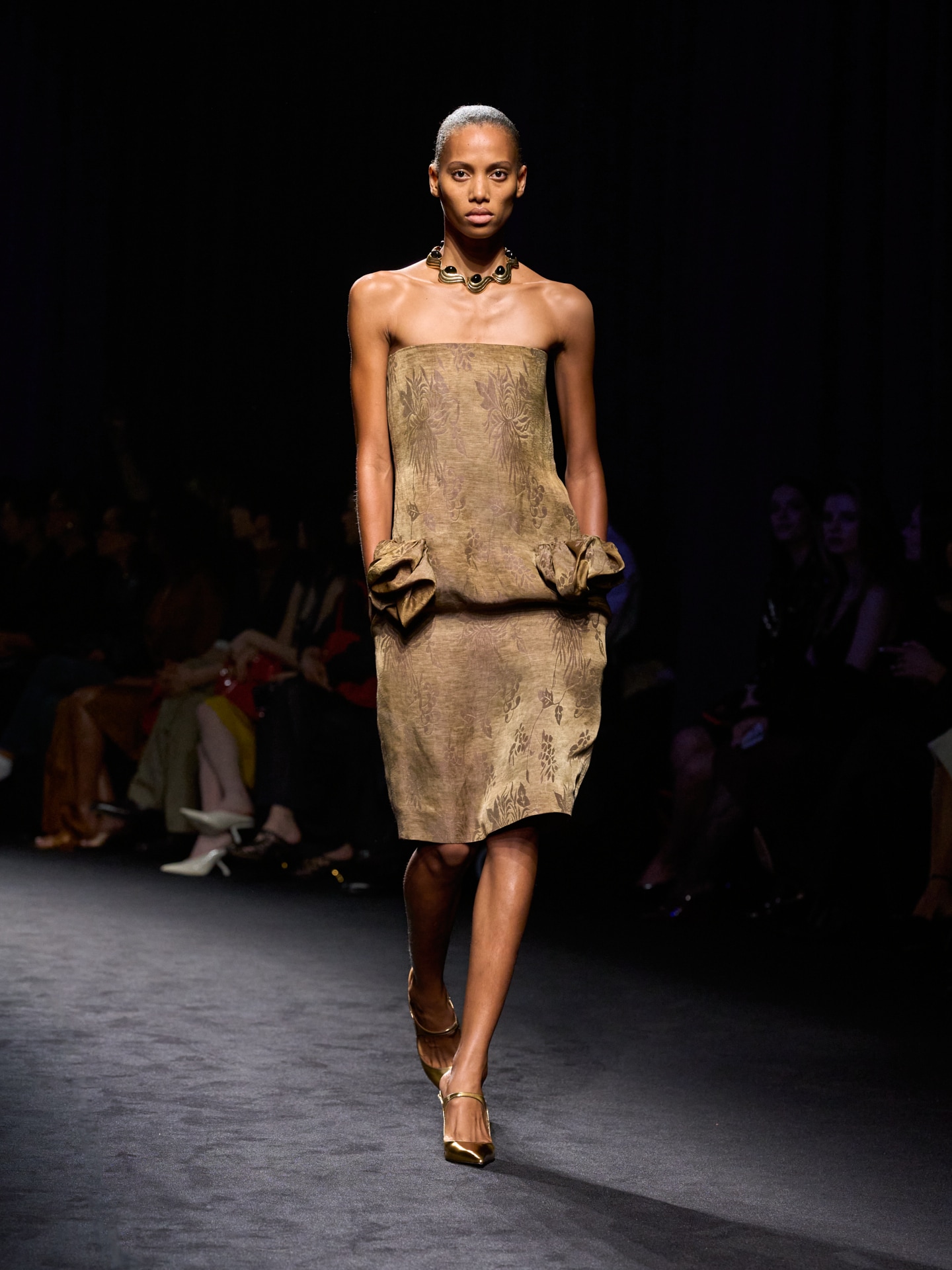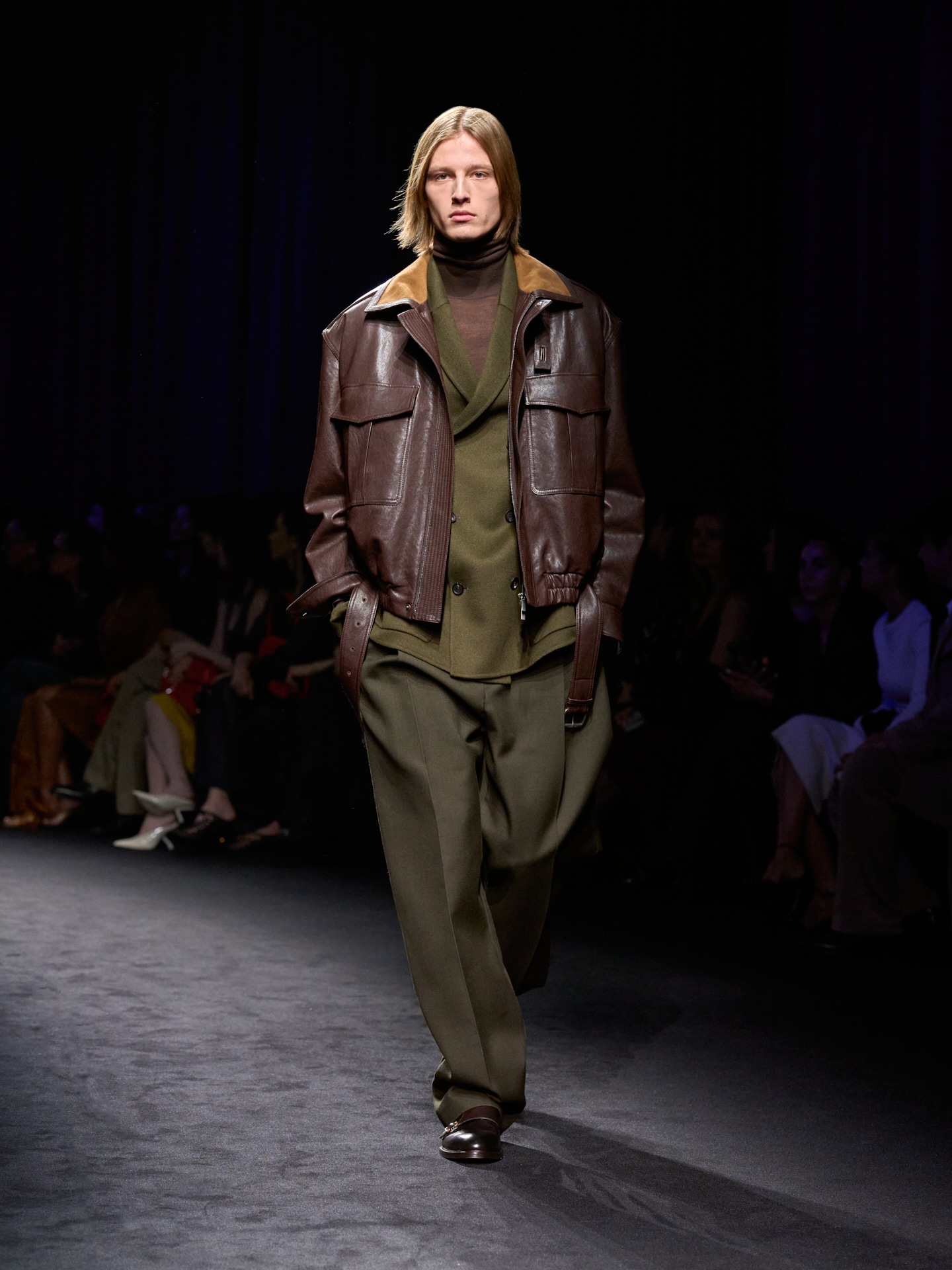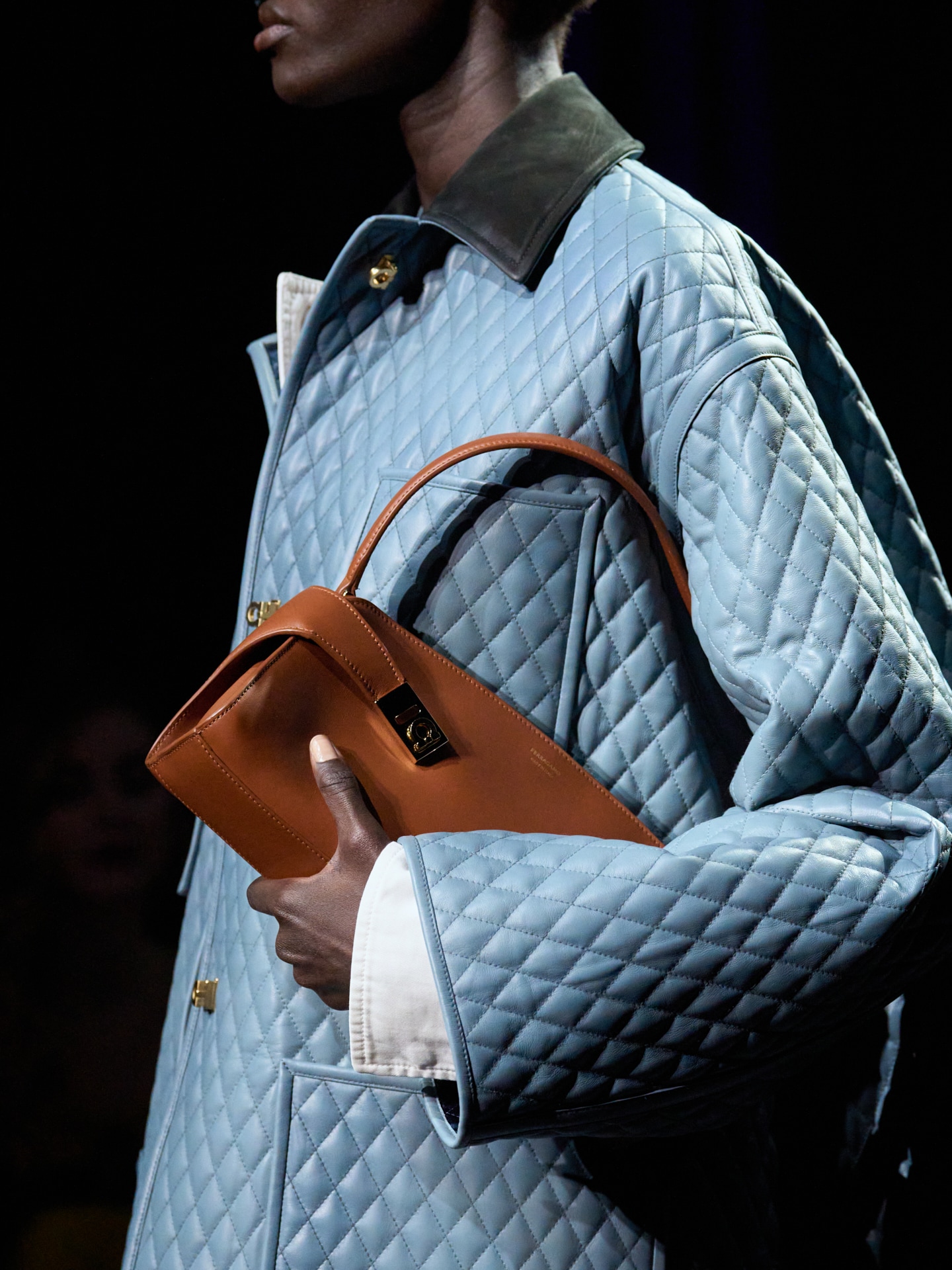 Para la temporada Otoño‑Invierno 2026, Maximilian Davis amplía su exploración de los orígenes de Ferragamo regresando al panorama artístico y cultural de la década de 1920, el periodo en el que nació la Casa. A través de su mirada contemporánea y refinada, el diseñador reinterpreta el espíritu de liberación de aquella época, inspirándose en los speakeasies: espacios donde clase, identidad y convenciones se disolvían, y donde personajes de distintos mundos se reunían después del horario habitual. En este entorno, la colección se desarrolla como un diálogo entre disciplina utilitaria y elegancia liberada, fusionando técnicas históricas con siluetas modernas y texturas experimentales.