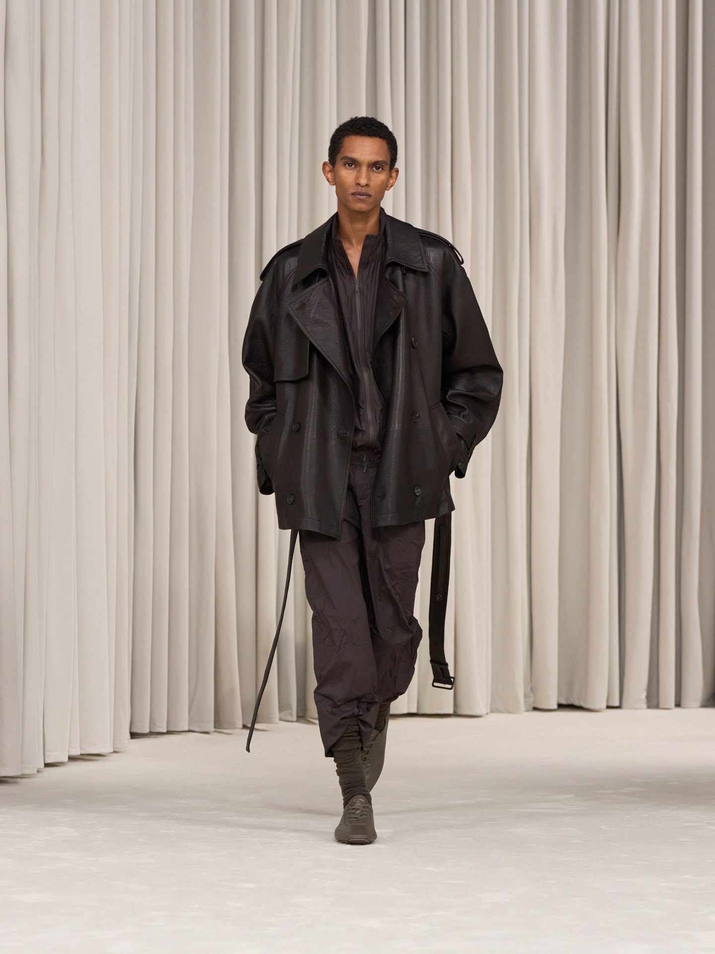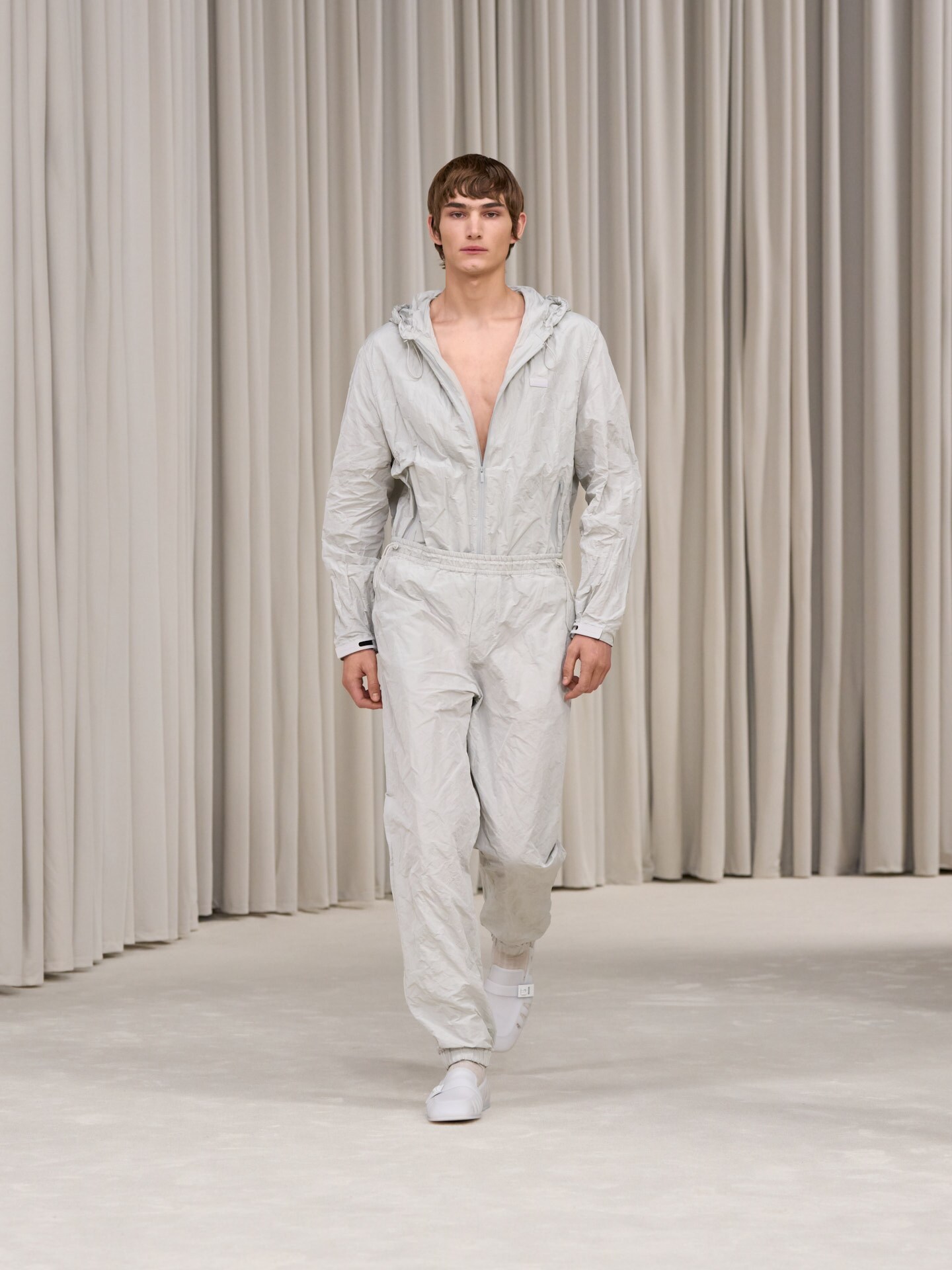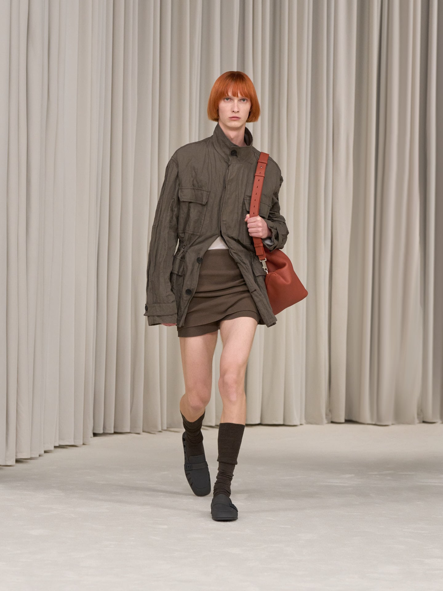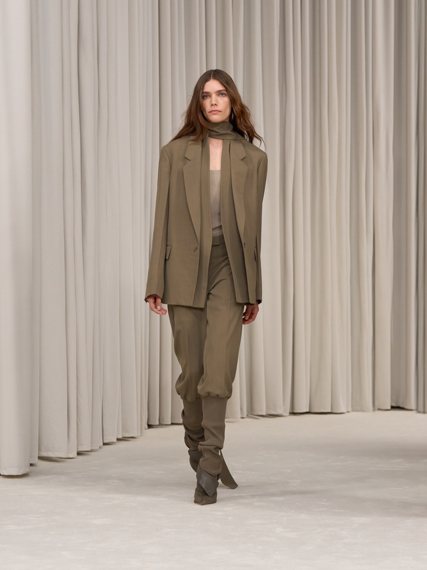En la colección Primavera/Verano 2025, Maximilian Davis explora la conexión entre Ferragamo y el mundo del ballet. Las prendas de ensayo inspiran las piezas de cachemir y algodón de segunda piel, superpuestas, retorcidas y anudadas. La libertad de movimiento se refleja en siluetas amplificadas, como los abrigos de ópera y los vestidos paracaídas de nailon de seda, ante y organza, y también en los monos técnicos y los cortes de sastrería oversize. Los vestidos bordados con lentejuelas rinden homenaje al glamour de Katherine Dunham, icónica bailarina, coreógrafa y antropóloga, para quien Salvatore Ferragamo diseñó zapatos a medida en Florencia en 1950.